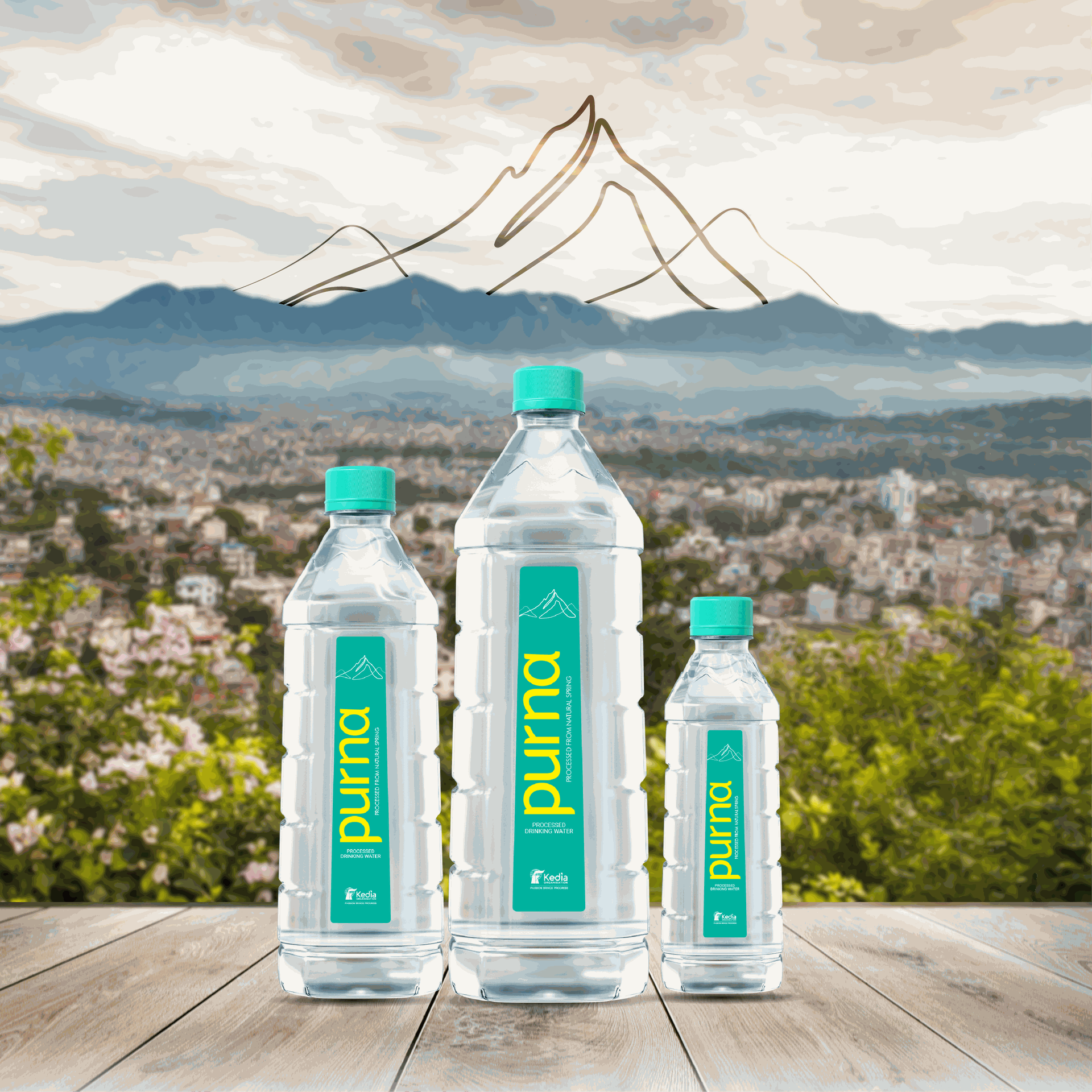 Purna natural spring water starts as rain and snow that falls onto a protected natural spring in the serene chandragiri hilly region.