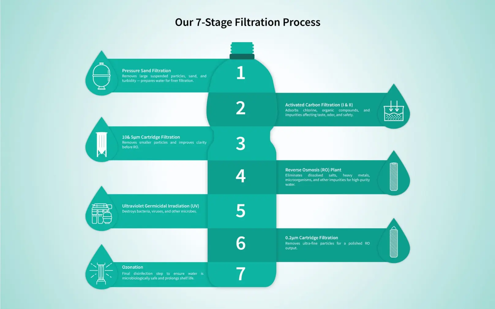Rigorously treated to exceed WHO and local health standards, ensuring safe, crystal-clear water for drinking, cooking, and hospitality.